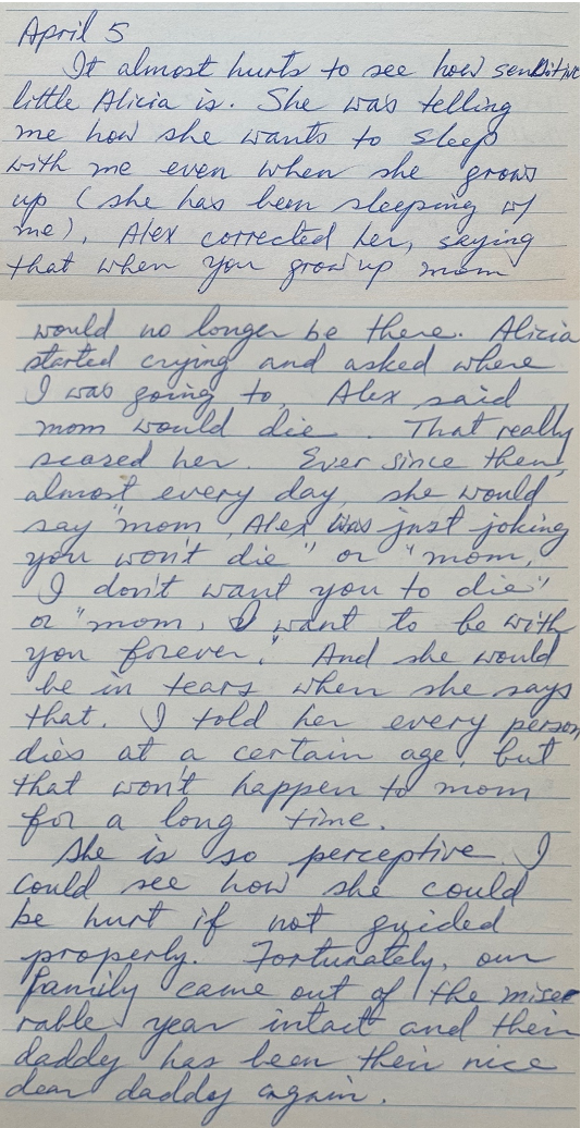 This is from my mother’s journal. In this entry I am 4 years old, and we were living in Albany, NY.